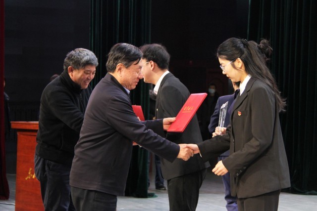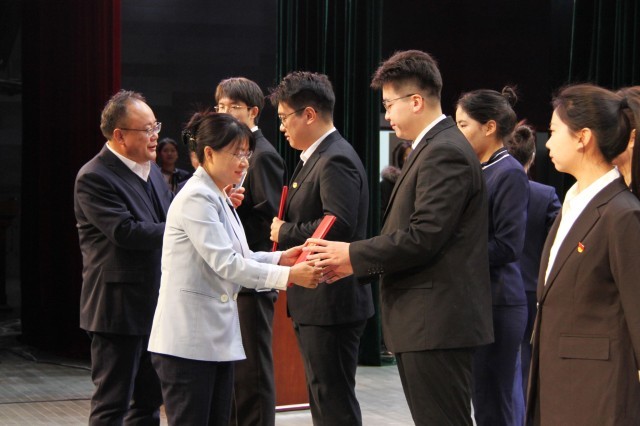 参会领导嘉宾为第一届王玉普励学奖学金获奖者颁奖。