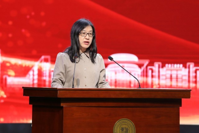 聂淑琴讲话。她表示,希望奖学金发挥“助学成业,励学敬业,奖学兢业”功能,激励青年学子科技报国热情。希望同学们不负厚望,大力弘扬王玉普院士的学术精神、人格风范和家国情怀,沿着王玉普院士的足迹,弘扬大庆精神铁人精神,为祖国科技事业和能源安全做出更大贡献。