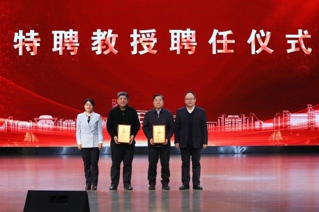 仪式上,刘合院士、李阳院士受聘为我校特聘教授,付晓飞、董宏丽颁发聘书。