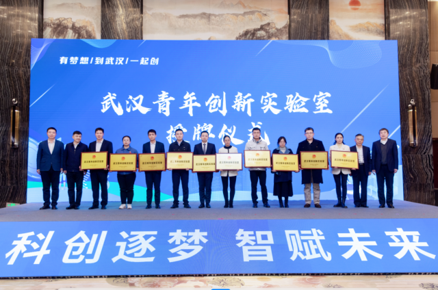 12月27日上午,武汉青年科技成果直通车暨大学生智赋中小企业创新大赛成果转化签约仪式在武汉会议中心成功举办。签约仪式上,武汉大学党委常委、副校长唐其柱,团省委副书记林桢栋,武汉市政府副秘书长黄志彤,交通银行湖北省分行党委书记、行长陈忠为“武汉青年创新实验室”优秀集体代表授牌。