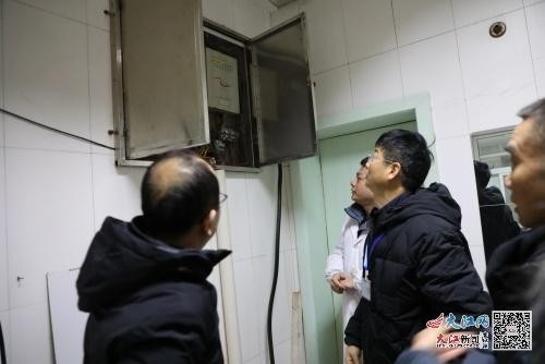 排查中,吴正文强调,冬季是安全事故的高发季节,雨雪冰冻天气,对医院老院区水、电、气等老旧基础设施能否正常运转是一次巨大考验,各职能部门要立即启动寒潮雨雪天气应对应急预案,即刻进入紧急状态,密切关注天气变化,强化监督检查,落实责任,严格落实24小时值班制度,坚守岗位,加大对安全生产隐患的排查力度,全力以赴做好极端天气安全防范应对工作,积极应对突发事件,同进加强紧急医疗救治力量,有效保障群众紧急就医需求,守护群众生命安全和身体健康。