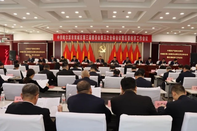 2月7日,中国共产党哈尔滨市双城区第三届委员会第五次全体会议暨区委经济工作会议在会展中心召开。全会坚持以习近平新时代中国特色社会主义思想为指导,深入贯彻习近平总书记重要讲话重要指示精神,学习传达中央经济工作会议、省委十三届五次全会暨省委经济工作会议、市委十五届四次全会暨市委经济工作会议精神,全面总结过去一年区委常委会工作,深入分析存在的困难问题、面临的形势机遇,明确当前和今后一个时期区委工作目标,安排2024年全区各项工作,部署经济发展任务,动员全区上下振奋精神、提振士气,团结一心、攻坚克难,加快构筑“五区五高地”,奋力谱写双城高质量发展、可持续振兴新篇章。