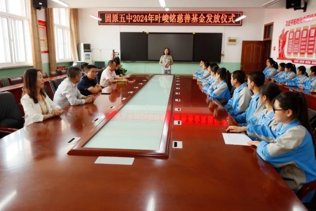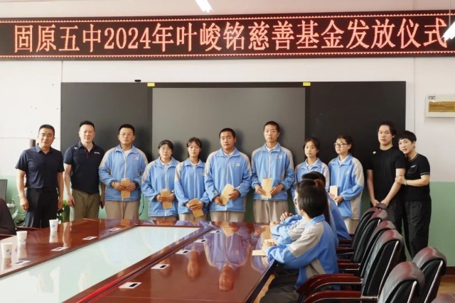 6月28日,叶峻铭慈善基金在固原五中举行慈善基金发放仪式,为学校25名品学兼优且生活困难的学生发放5万元助学金。这是继2023年11月后该基金会再一次在固原五中进行慈善基金发放。