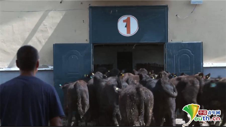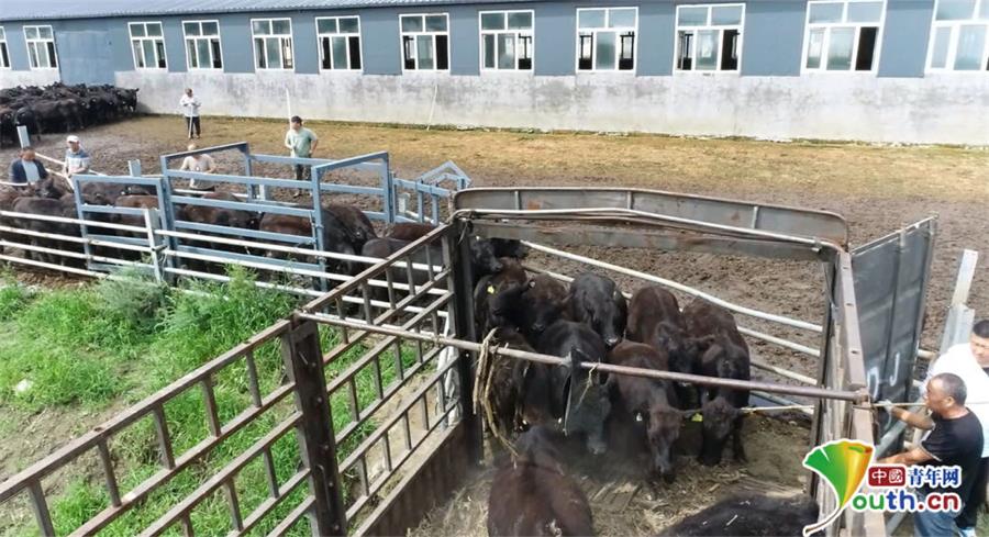 村民将安格斯高端肉牛赶回圈舍。孟磊 摄
