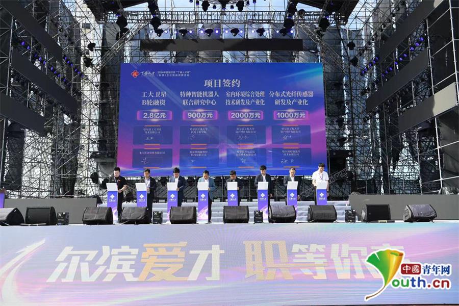 启动仪式上发布“人才归雁热线”,为海内外有意愿投身龙江振兴发展的各类人才提供全方位信息对接服务。今年8月,哈尔滨市委人才办创新升级市校企合作机制,发起组建了“丁香人才发展联盟”,首批入盟共有60家单位,哈尔滨电气集团有限公司、哈尔滨工业大学、哈尔滨圣邦微电子科技有限公司代表联盟成员单位在启动仪式上发言。技术经理人服务团与环大学大所创新创业生态圈成果转化服务战略合作等5个市校企合作重点项目现场签约。