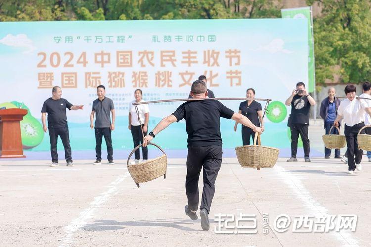 活动现场举办的农民趣味运动会热闹纷呈,徒手剥玉米、扁担挑粮、猕猴桃包装等比赛特色鲜明,参赛选手热情高涨、全力以赴,充分体现了周至农民勤恳朴实、奋发向前的精气神。