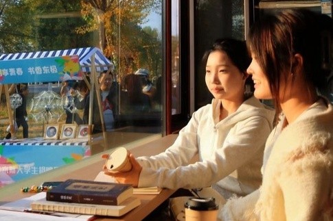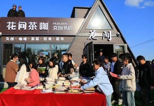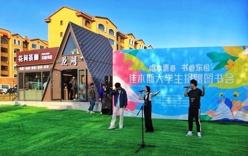 10月13日下午,一场以“唱享青春,书香东极”为主题的大学生捐赠图书会暨金秋青春歌友会在向阳区学府花海——花间茶咖文创书房营地举行。