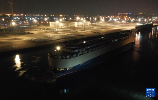 2月26日,装载着超4000辆国产自主品牌汽车的货轮驶离天津港环球滚装码头。