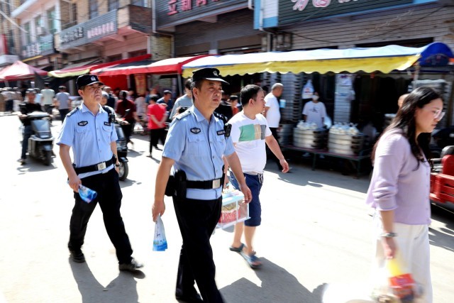 当天上午,焦岱大集街道上人头攒动,叫卖声、议价声此起彼伏。街道两旁摆满了各式各样的摊位,商品琳琅满目,涵盖了吃穿用度等各个方面,吸引着周边群众以及不少从市区赶来的游客。蓝田县公安局焦岱派出所所长臧文涛和民警走在熙熙攘攘的人群中,一边为大家发放反诈宣传单,一边通过真实案例为大家剖析“网络购物”“网络贷款”“网络刷单”以及“微信冒充好友”等高发电信网络诈骗形式。