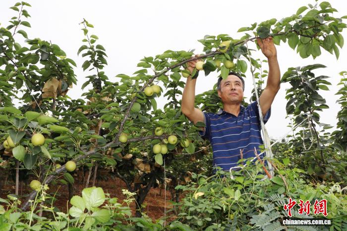 图为洋县种植户采摘有机黄金梨。(洋县县委宣传部供图)