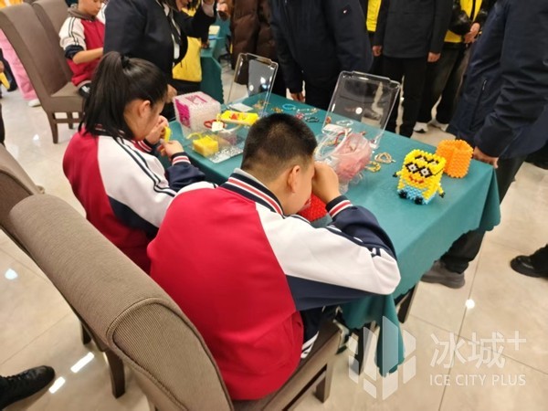 在活动现场,记者看到了一个个精美的手作:地毯画、青花瓷碎片画、编珠戒指、钻石贴画、掐丝珐琅、团扇、蛋壳画、扭扭棒、国画、非遗印染、手工皂……这些作品背后,是一个个动人的故事:有的学生用指尖代替目光,在织物的经纬间编织想象的图景;有的学生用色彩替代声音,在画布上勾勒内心丰盈的世界。每一件作品都闪耀着学生们专注与执着的光芒,凝聚着他们感知世界、创造价值的真诚。在这些光芒的背后,是一群默默耕耘的特殊教育教师,他们以专业搭建桥梁,以耐心点亮潜能,用尊重与智慧,日复一日静候每一朵花的绽放。市教育局相关负责人表示:“这些作品不仅展现了学生们的成长,更承载着师者最深切的期许。这里展出的不只是一件件物品,更是一个个被看见的梦想。”