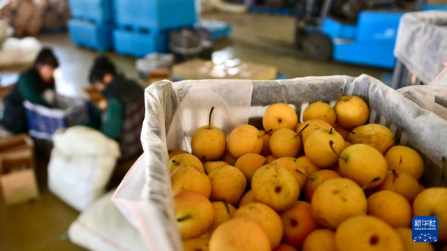 近日,辽宁省鞍山市海城市的南果梨深加工企业迎来生产旺季。在当地的南果梨加工厂内,工人们忙着将新鲜的南果梨加工成梨酒、梨膏等高附加值产品。