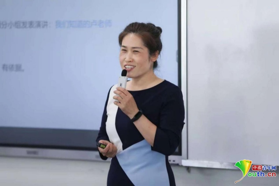 卢卓元在课堂上为同学们分享实用案例。西安欧亚学院供图