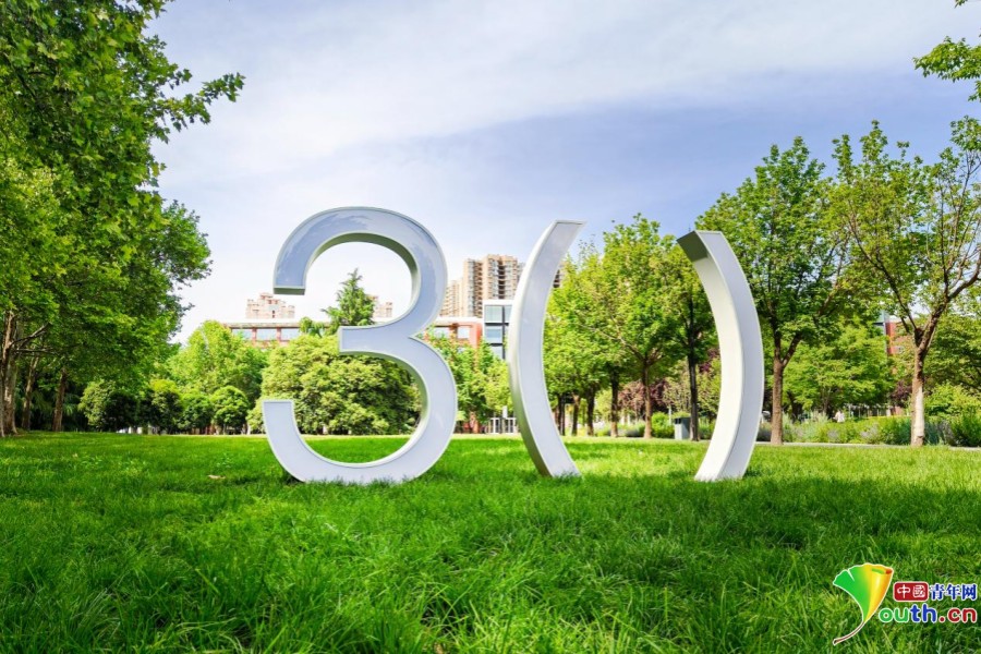 西安欧亚学院30周年校庆校园打卡标识。西安欧亚学院供图