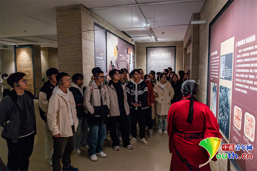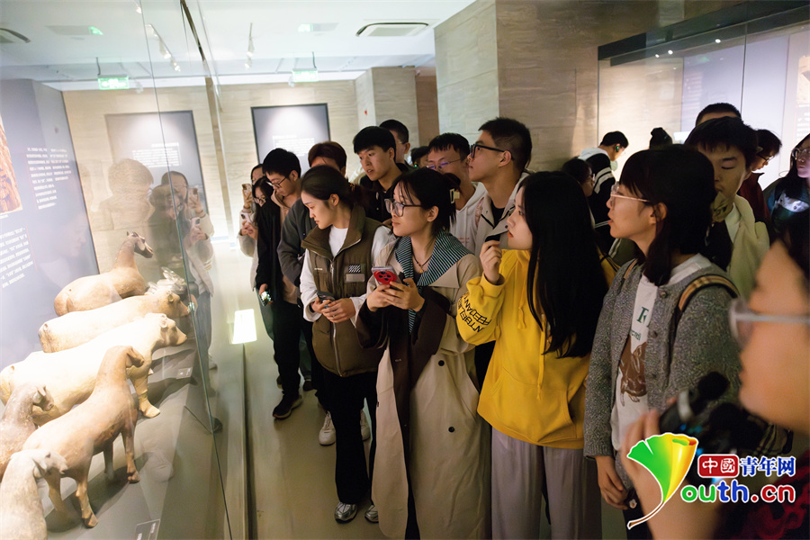 中国青年网讯 11月2日,在被百亩银杏林金黄尽染的汉景帝阳陵博物院,西北工业大学“馆长带你看文物”美育通识课程师生迎来了本学期最后一堂现场教学。