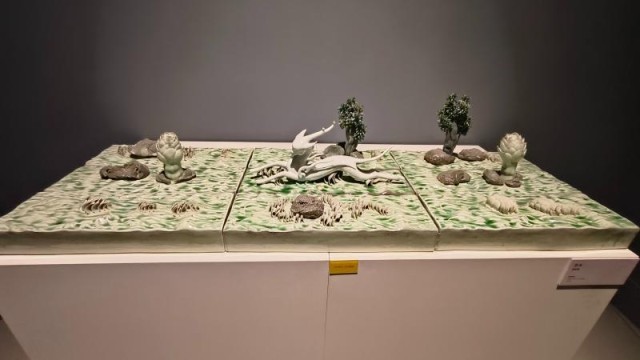 这场“丝路回望·瓷上中国——釉色里的敦煌”主题特展,集结了89位中外艺术家的151件(套)陶瓷作品,涵盖了雕塑、绘画、装置、器皿等丰富形式,以“千年叙事”“文明交融”两大篇章,勾勒出一条连接景德镇与敦煌的“艺术丝路”,搭建起一场穿越时空的艺术盛典。