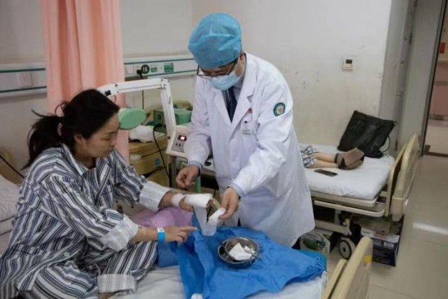 一周来,大庆油田总医院手外整形科医护团队将张凤华作为“特殊患者”对待,因为断指再植只是第一步,术后观察、危像处理、恢复功能都是治疗的关键。目前,卢立春每天为张凤华换药、观察,恢复情况良好。