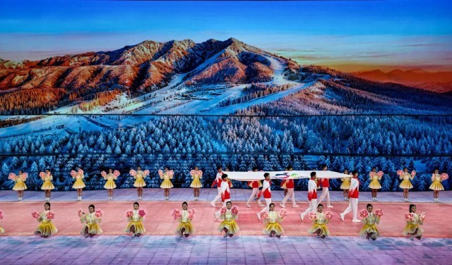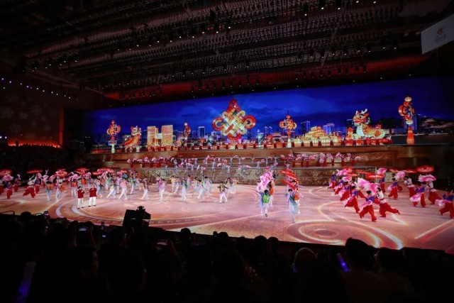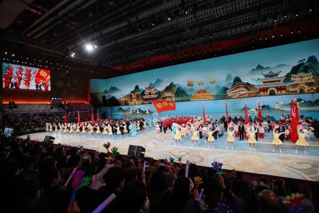 上篇《古脉新承》以“冰雪”为韵,描绘了一幅“大美陕西”的人文风情画卷,迎接全省冬运健儿热情欢聚。在《冬日映三秦》的节目中,冰花窗前映照着千年冬韵,新春乐曲呼唤着归乡游子。这场跨越山海的相聚,是冰雪联结的情谊,更是三秦大地敞开胸怀的赤诚盛情。最令人惊艳的是《潮音贯古今》中的“三秦风物展”,地面投影化作一幅百米冰雪长卷:陕南的腊肉暖锅雾气蒸腾,关中的羊肉泡馍香气仿佛穿透屏幕,陕北的黄米馍馍金黄诱人;羌族雪纹刺绣、冰上皮影戏、雪花剪纸渐次绽放。当舌尖品味烟火、指尖流淌传奇,传统与现代晕染出浓浓冬韵,文化自信在这片热土上蓬勃生长。