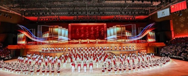 国旗入场,《东方红》旋律悠扬而起。大屏上铺展开一幅壮阔的黄河之景,随着画面变化,绥德师范、《沁园春·雪》手稿、延安宝塔山、八路军驻西安办事处旧址、马栏革命旧址、陕甘边革命根据地照金纪念馆等场景流动呈现。当8名仪仗队员高擎五星红旗,踏着《我爱你中国》的音乐铿锵走来,现场观众无不热血沸腾、激情澎湃。