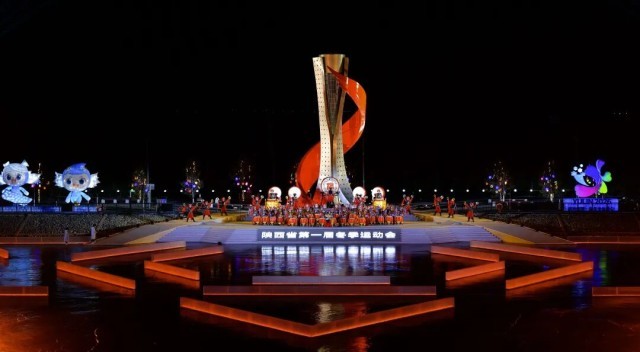 2月6日,夜幕垂落,陕西省第一届冬季运动会的主会场榆林市体育中心体育馆与分会场榆林水上运动中心华灯齐放,如两颗明珠镶嵌在塞上大地。其中,室内的主会场侧重仪式盛典与文艺展演,室外的分会场聚焦冰雪实景与竞技展示。当晚,历史与现实、冰雪与文明、黄土与激情,在榆林这座“双运之城”碰撞交融。