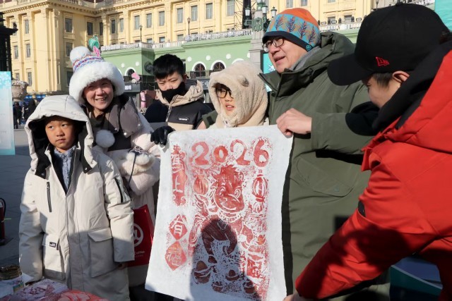 “有求必应,哈尔滨,还有什么是你做不到的?”“哈尔滨这次真的是在为游客掏心掏肺掏‘家底’。”面对网友的惊叹,哈尔滨人报以朴素的微笑。在索菲亚景区,来自上海的游客王嘉在观看冰版画创始人朱晓东等艺术家以索菲亚景区为题材创作的冰版画后,还兴致勃勃地与艺术家合作创作了一幅“马上有福”冰版画。“哈尔滨不仅有美丽的冰雪,更有丰富的文化内涵。”王嘉的感叹,道出了许多游客的心声。而到了夜晚,升级版的“月升索菲亚·光影嘉年华”3.0光影秀更是让她眼前一亮,“之前在热搜上看到过‘人造月亮’,没想到今年它还升级了新版本,太惊喜了!”