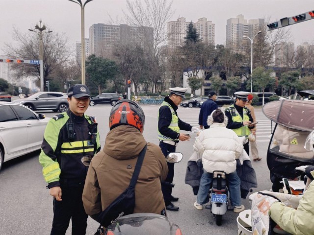 在严格管控的基础上,执法人员还坚持“柔性引导”,将“护学岗”变为“宣传站”,通过剖析典型案例、发放宣传资料,向学生及家长面对面普及安全知识,引导大家自觉遵守交通规则,切实提升交通安全意识。