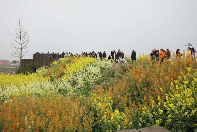 不远处,“打卡集章”抽奖点前排起长队。游客李昕荣手持一张盖满印章的卡片,幸运地抽中一坛老酒。“从入口领卡开始,一路赏花、玩游戏、集章,最后还有惊喜,这种沉浸式体验让踏春过程充满乐趣。”他说。