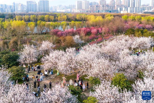 近日,西安大明宫国家遗址公园内繁花盛开,吸引游人前来踏青赏花,感受美好春光。