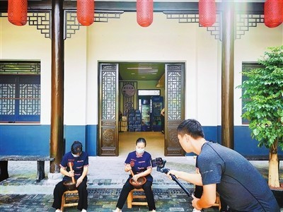 于都县文化馆工作人员拍摄短片宣传“非遗餐厅”。