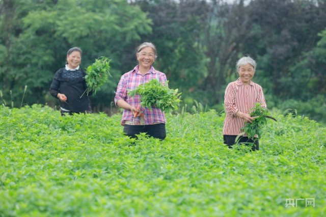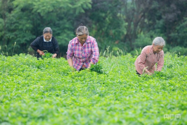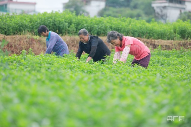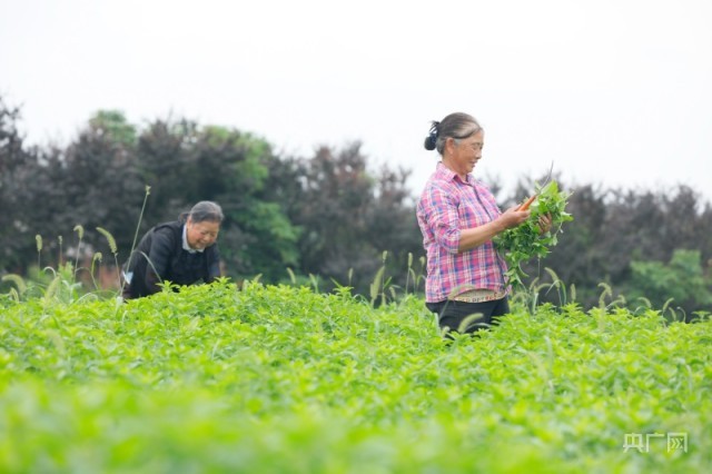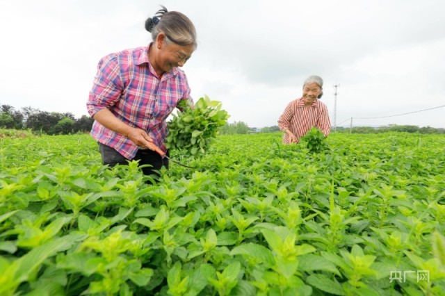 央广网吉安5月24日消息(记者刘培俊)5月22日,在江西省吉安市吉州区长塘镇李家坊村中药材种植示范基地,农户正在采收薄荷。