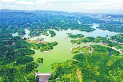 五渡港水库全景。