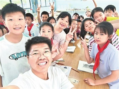 ↑孩子们和李仁发在一起是那么开心。