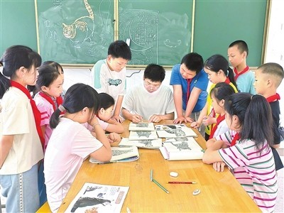 →李仁发教孩子们绘画。