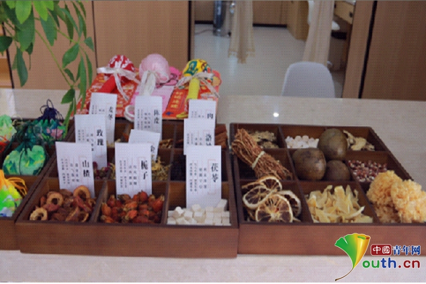 中医馆内中药代茶饮区域所展示中医药材。安源区融媒体中心供图