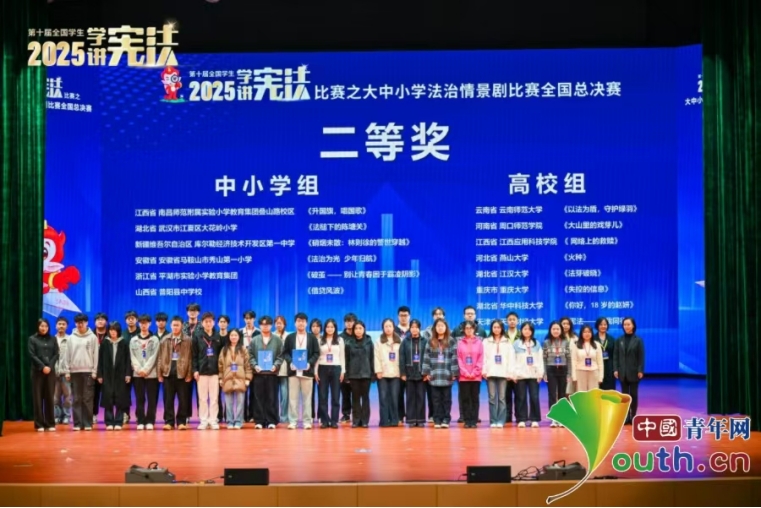 中国青年网讯11月10至11日,由教育部主办,重庆市教育委员会承办,西南政法大学协办的第十届全国学生“学宪法 讲宪法”活动全国大中小学法治情景剧比赛总决赛在重庆举行。经过激烈角逐,江西应用科技学院选送的作品《网络上的救赎》凭借其深刻的法治内涵与精湛的艺术呈现,最终在25支参赛队伍中以第九名的成绩获全国二等奖。
