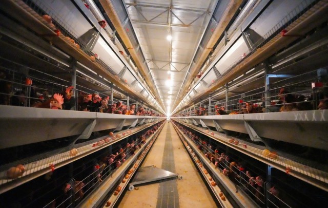 走进养鸡场的现代化鸡舍,眼前的景象让人眼前一亮,没有扑鼻的异味,四层叠式笼养设备“整齐列队”,蛋鸡住在一个个“单间公寓”里,轨道式自动喂料机沿着预设路线缓缓运行,精准为每一只蛋鸡送上“营养餐”;一枚枚带着余温的新鲜鸡蛋,顺着传送带源源不断涌向分拣中心,全程无需人工干预。