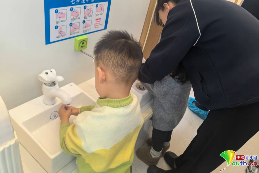 榆林旅投集团托育中心,小朋友们进行饭前洗手。陕西省卫生健康委供图