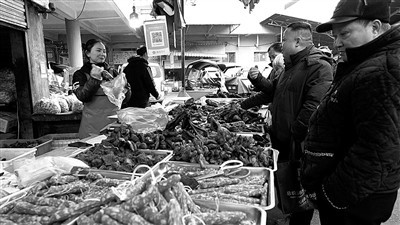 ▲市民在腊味摊位前驻足