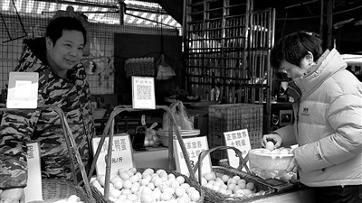 ▼市民在挑选土鸡蛋、土鸭蛋