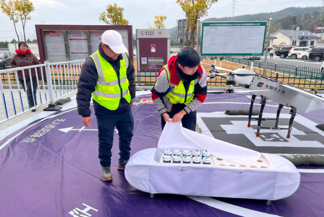 “你看,无人机来送货了。”顺着肖尊君的指向,记者看见一架白色无人机在空中由远及近,稳稳落在起降场内。原来,这是今年春运在服务区推广的无人机配送服务,现场扫码,即可选购特色饮品、旅途好物、休闲零食等服务区买不到的商品。无人机充当“空中快递员”,把商品从南康区交通综合服务站快速运至服务区内,给过往司乘带来便捷暖心的体验。(记者张惠婷)