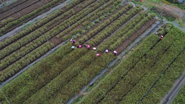 4月1日,在位于抚州市东乡区珀玕乡仙基村的蓝莓育苗基地,村民正在为蓝莓苗剪枝。时下,当地农户抢抓农时,加紧做好春季管护作业,促进苗木茁壮生长。