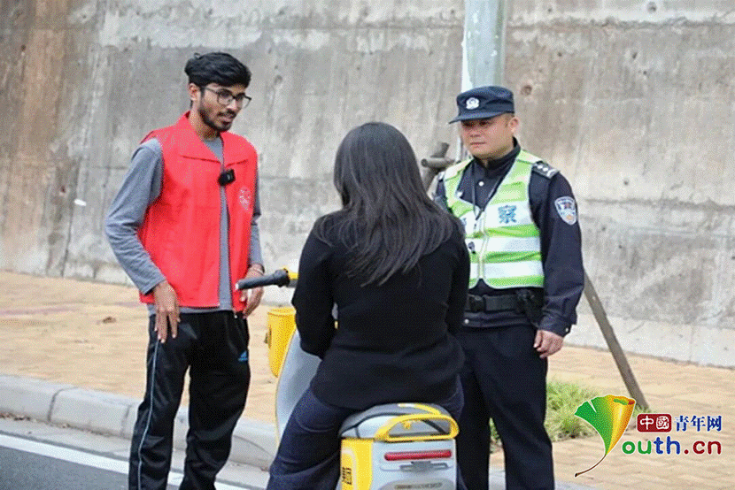 来自莫桑比克的志愿者本杰明说着一口流利的中文:“我在中国学习生活,交通规则和我们国家不太一样,参加这个活动不仅能帮助别人,也让我自己学到很多。”活动现场,身穿红马甲的留学生志愿者们用着生涩却真诚的中文进行劝导,成为街头一道独特的风景线,引得路人纷纷点赞:“这群外国人太可爱了,必须听劝戴好头盔!”